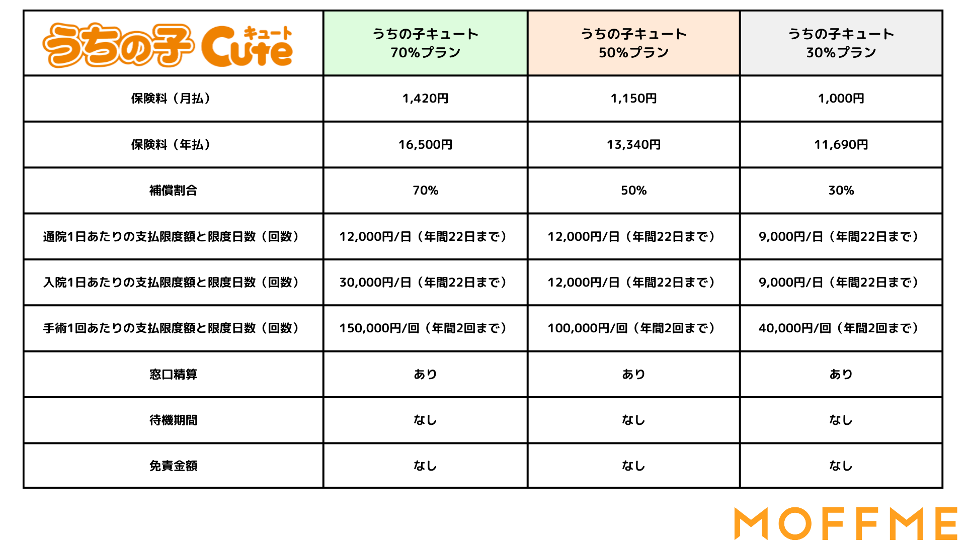 補償割合は低いですが、その分、月々の保険料が抑えられます。手頃な保険料で、急な病気やケガに備えたい方におすすめです。